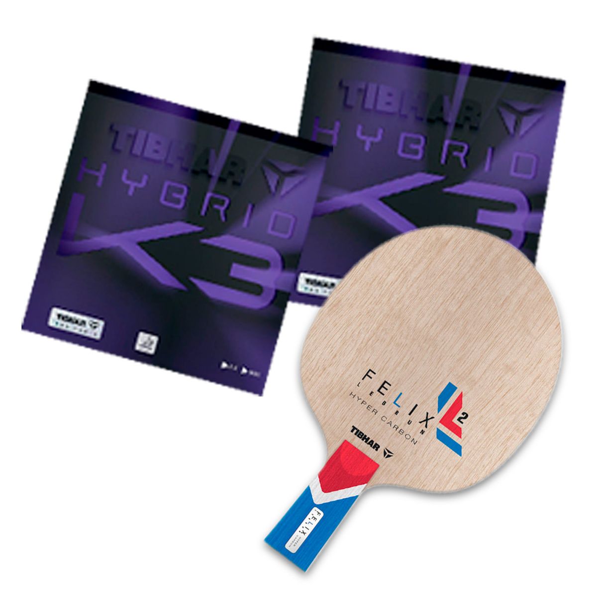 Revêtements coup droit et revers TIBHAR Hybrid K3 2.0mm , le revêtement apprécié dans le monde entier pour ses qualités d'adhérence hors normes alliées à une mousse ultra dynamique.(voir les caractéristiques du revêtement ref. 0000171 )