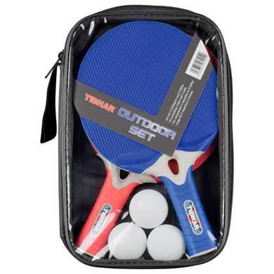 Set de tennis de table comprenant 2 raquettes et 3 balles outdoor en plastique.