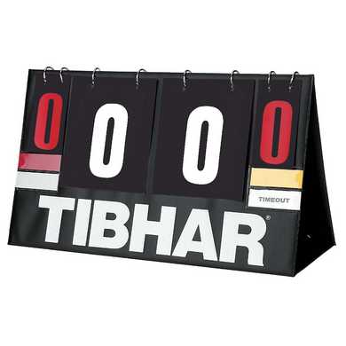 Support en matière synthétique. Chiffres très robustes (de 0 à 21). Marquage des sets (de 0 à 5). Affichage du score visible des deux côtés. Avec Time out.