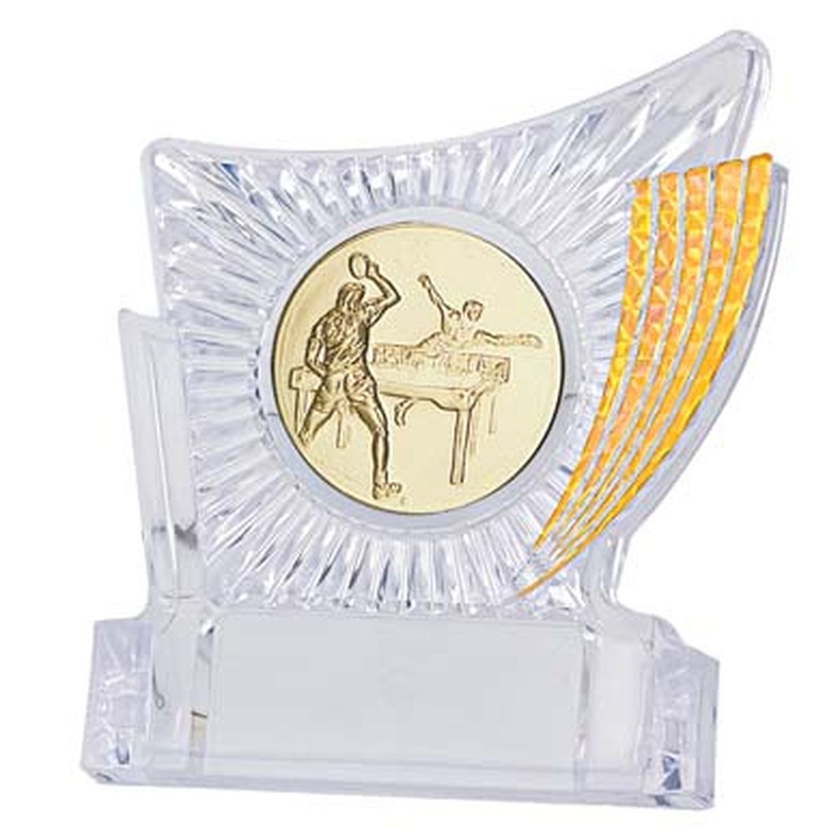 Réf. 08 1 00 01 000 Forfait : 5 € texte sur un trophée en verre.